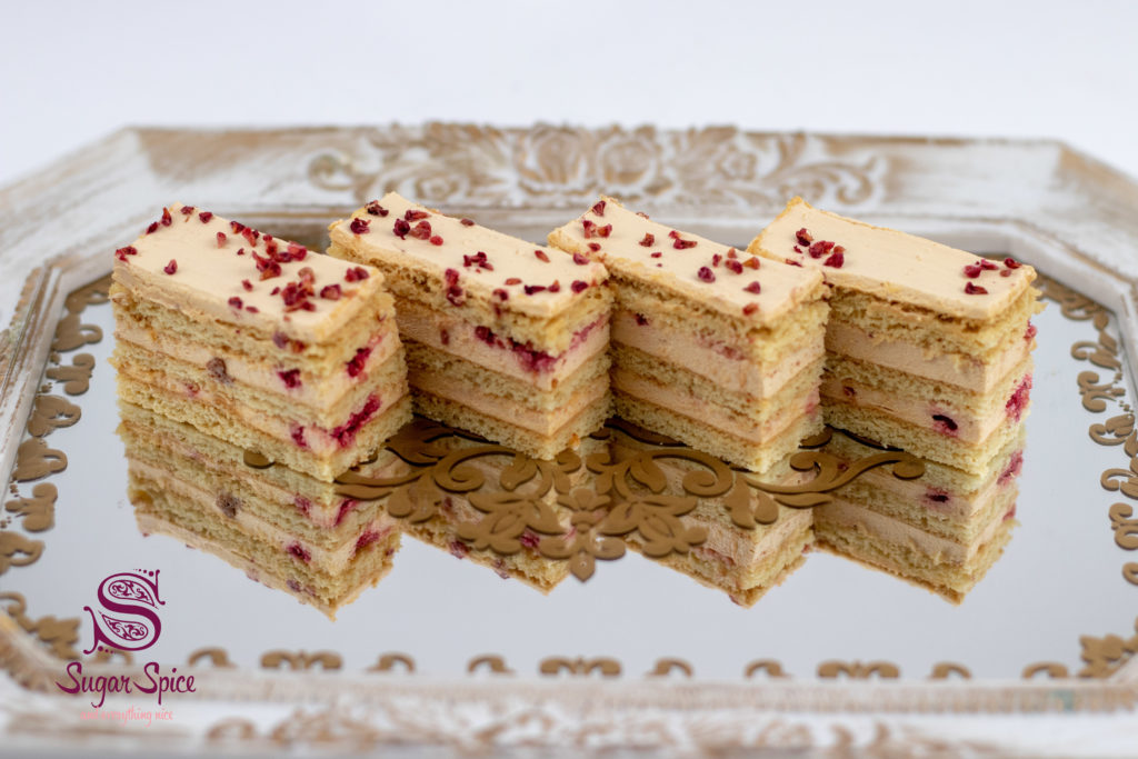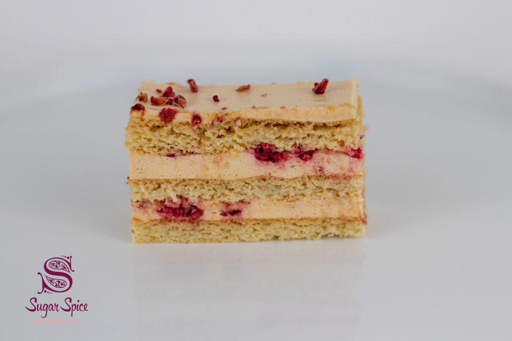 cod: p010 Prăjitură Medovik cu zmeură și caramel.
